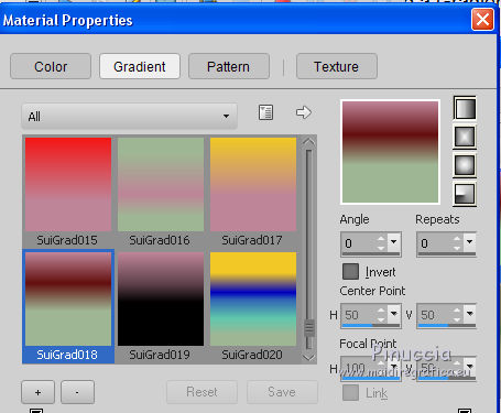 2. Set your foreground color to Gradient et select the Gradient SuiGrad018, style Linear.