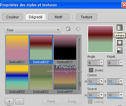 2. Placer en avant plan Dégradé et sélectionner le dégradé SuiGrad018, style Linéaire.