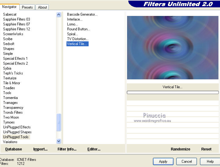 6. Effets>Modules Externes>Filters Unlimited 2.0 - Unplugged Tools - Vertical Tile.