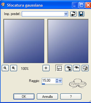 Regola>Sfocatura>Sfocatura gaussiana, raggio 15.