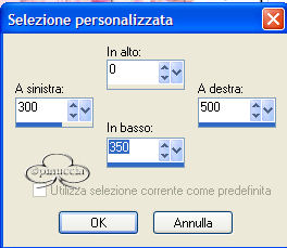 Attiva lo strumento selezione imposta rettangolo e Selezione personalizzata.