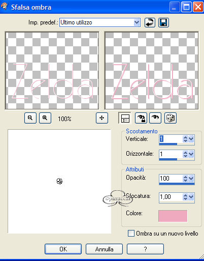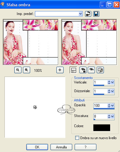 Effetti>Effetti 3D>Sfalsa ombra, con questi settaggi: