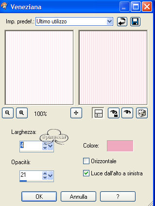 Effetti>Effetti di trama>Veneziana con questi settaggi: