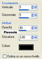 10. Effetti>Effetti 3D>Sfalsa ombra, con i seguenti settaggi, colore nero.