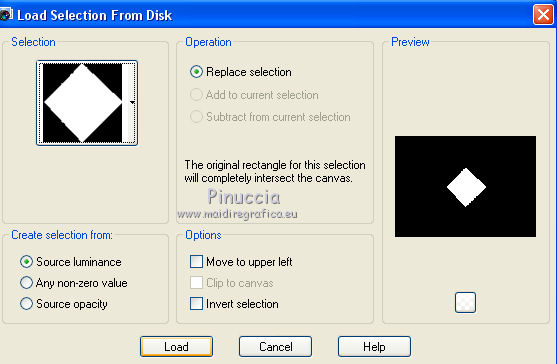 6. Selections>Load/Save Selection>Load Selection from Disk.