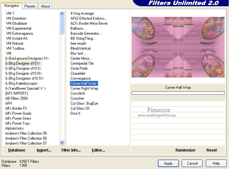 Effects>Plugins>Filters Unlimited 2.0 - &<Bkg Designer sf10> - Corner Half Wrap