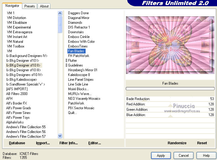 Effects>Plugins>Filters Unlimited 2.0 - &<Bkg Designer sf10II> - Fan Blades.