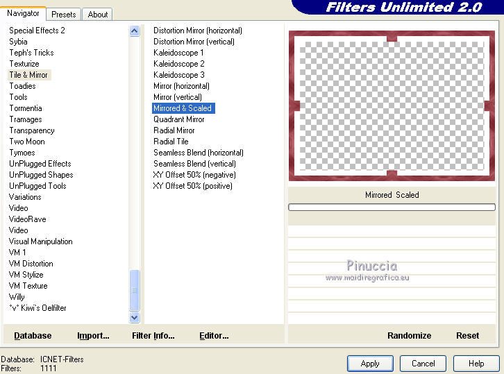 13. Effects>Plugins>Filters Unlimited 2.0 - Tile & Mirror - Mirrored & Scaled.