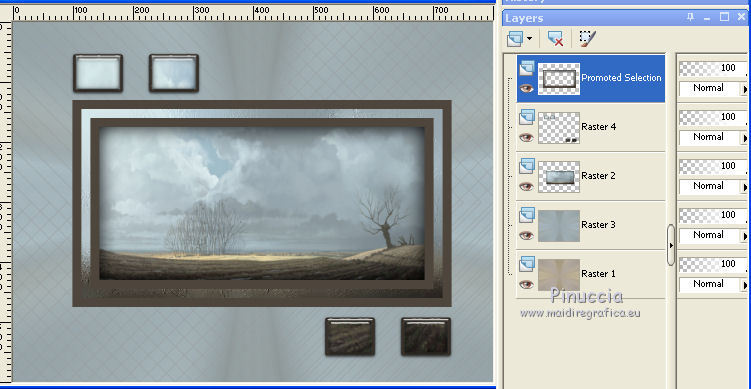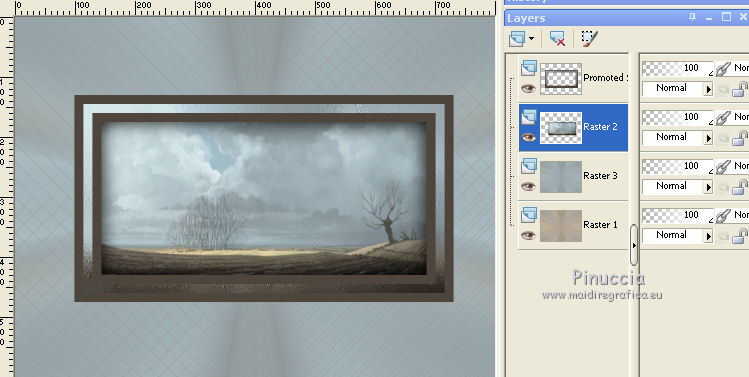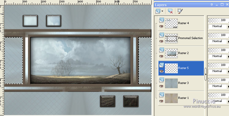 7. Close the bottom layer Raster 1 and activate the 2nd layer from the top (Promoted selection)