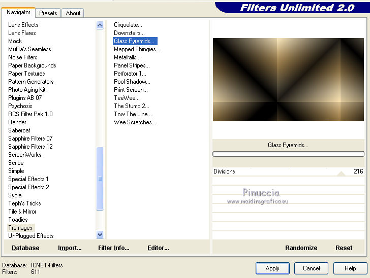 7. Effetti>Plugins>Filters Unlimited 2.0 - Tramages - Glass Pyramids.