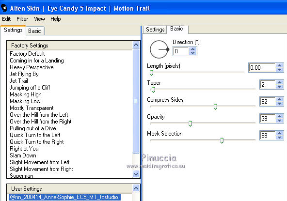 Metti il preset nella cartella del filtro Alien Skin Eye Candy 5 Impact>Settings>Motion Trail.
