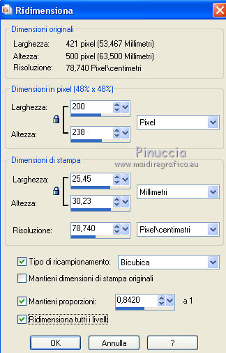 Immagine>Ridimensiona - 200 pixels di larghezza, tutti i livelli selezionato.