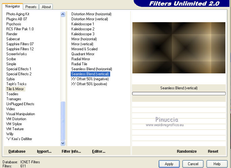 8. Effetti>Plugins>Filters Unlimited 2.0 - Tile & Mirror - Seamless Blend (Vertical)