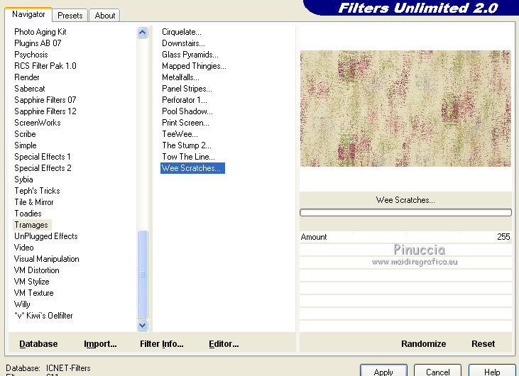 4. Effetti>Plugins>Filters Unlimited 2.0 - Tramages - Wee Scratches.