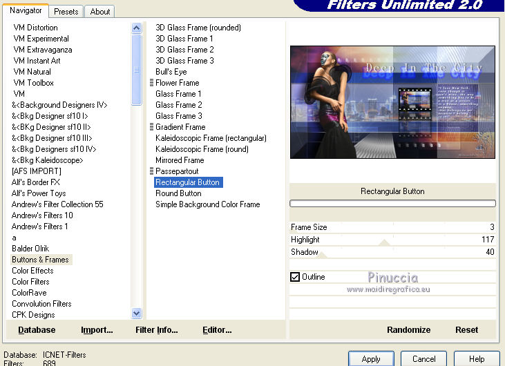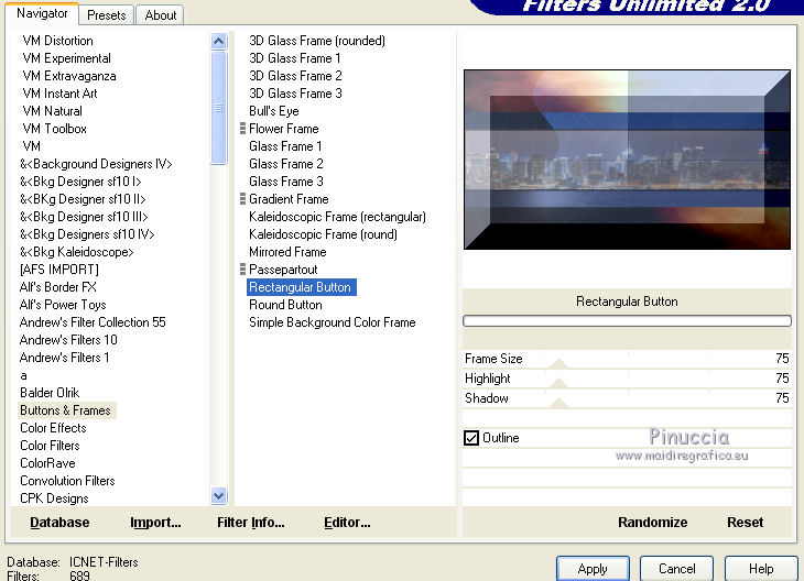 59. Effetti>Plugins>Filters Unlimited 2.0 - Buttons & Frames - Rectangular Button.