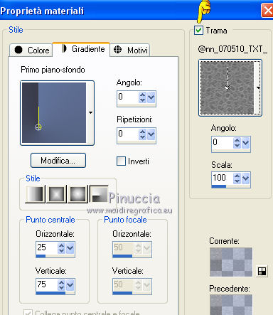 Apri la paletta del gradiente di primo piano e seleziona trama.