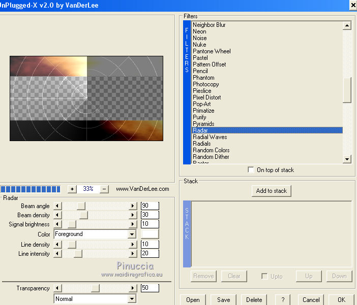 Effetti>Plugins>VanDerLee - Unplugged-X - Radar - colore bianco, Transparency 50.