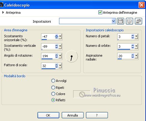 17. Effetti>Effetti di riflesso>Caleidoscopio, con i settaggi precedenti.