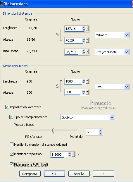 Immagine>Ridimensiona, 1080 pixels di larghezza, tutti i livelli selezionato.