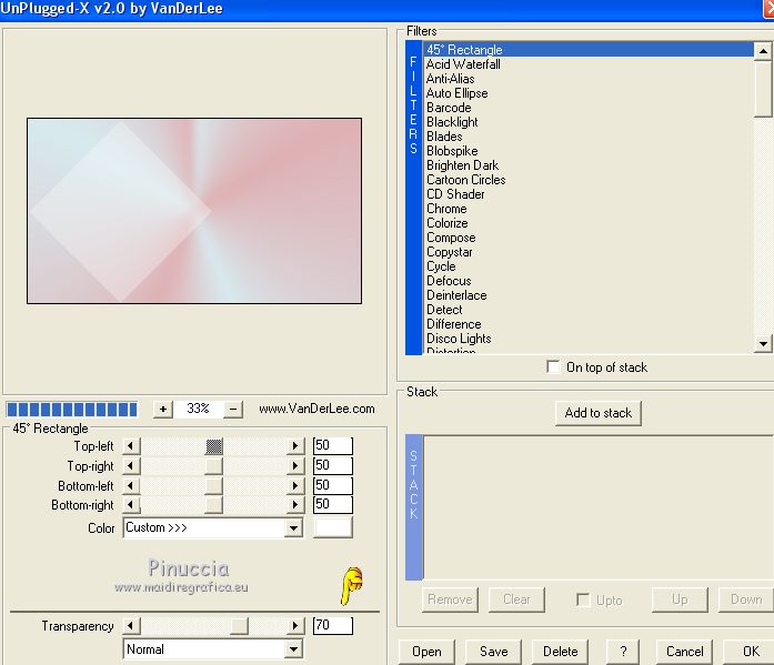 3. Effetti>Plugins>VanDerLee - Unplugged-X - 45° Rectangle, colore bianco