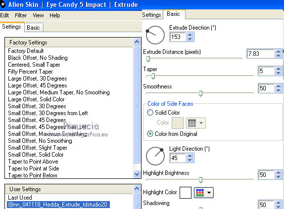 6. Effetti>Plugins>Alien Skin Eye Candy 5 Impact - Extrude.