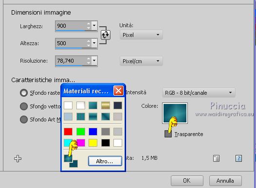Dopo aver tolto la selezione a Trasparente, clicca sulla paletta del colore e avrai la tabella dei colori recenti;