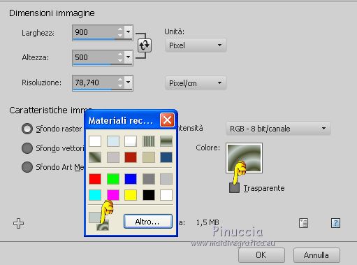 Dopo aver tolto la selezione a Trasparente, clicca sulla paletta del colore e avrai la tabella dei colori recenti;