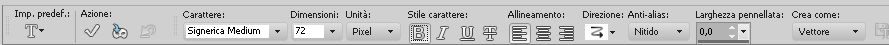 Attiva lo strumento Testo , con i seguenti settaggi: