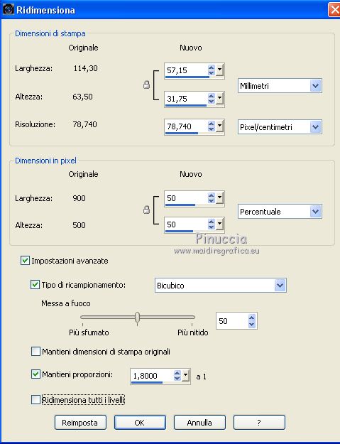 31. Immagine>Ridimensiona, al 50%, tutti i livelli non selezionato.
