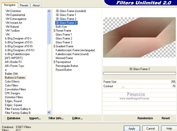 10. Effetti>Plugins>Filters Unlimited 2.0 - Buttons & Frames - 3D Glass Frame 3.