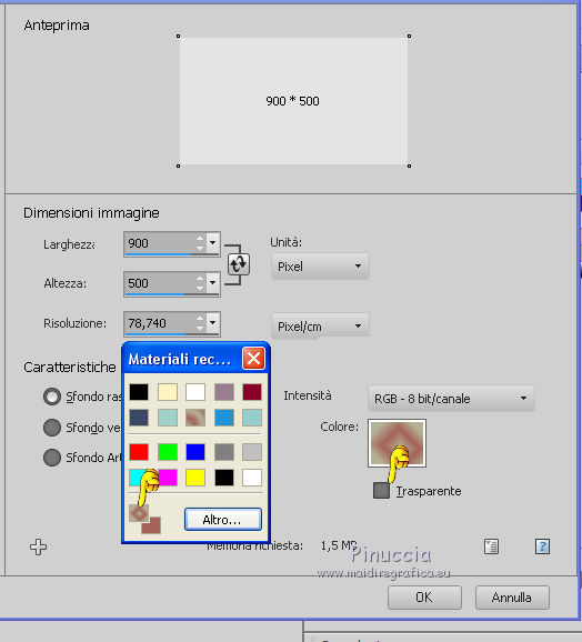 Dopo aver tolto la selezione a Trasparente, clicca sulla paletta del colore e avrai la tabella dei colori recenti;