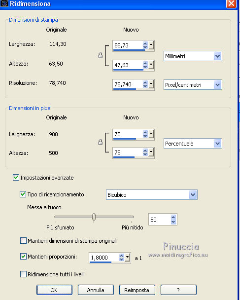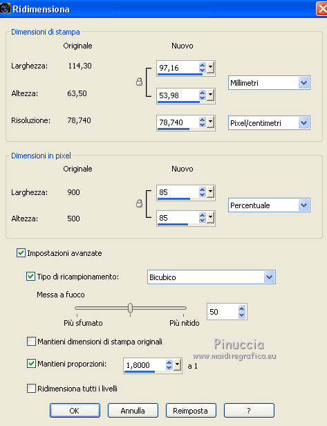 Immagine>Ridimensiona, all'85%, tutti i livelli non selezionato.