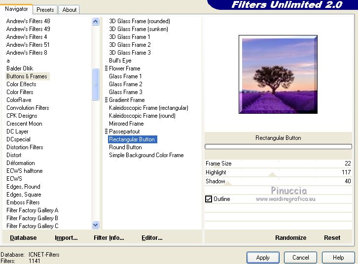 Effetti>Plugins>Filters Unlimited 2.0 - Buttons & Frames - Rectangular Buttons.