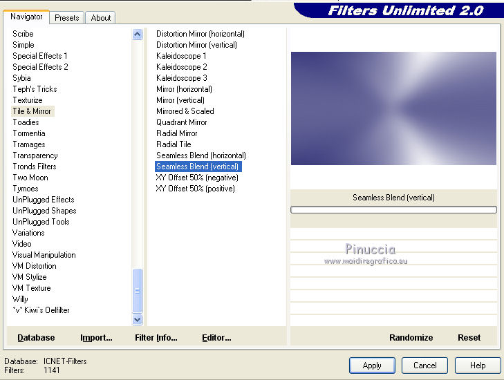 4. Effetti>Plugins>Filters Unlimited 2.0 - Tile and Mirror - Seamless Blend (vertical)
