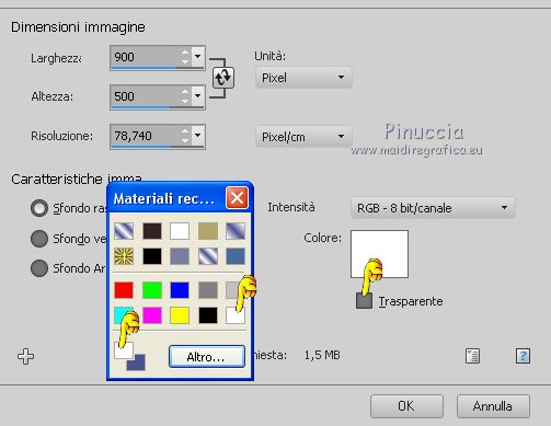 Dopo aver tolto la selezione a Trasparente, clicca sulla paletta del colore e avrai la tabella dei colori recenti;