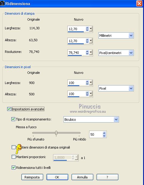 33. Immagine>Ridimensiona, 100 pixels di larghezza, tutti i livelli e mantieni proporzioni selezionati.