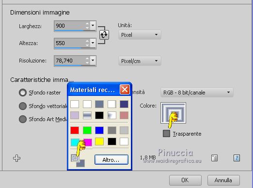 Dopo aver tolto la selezione a Trasparente, clicca sulla paletta del colore e avrai la tabella dei colori recenti;