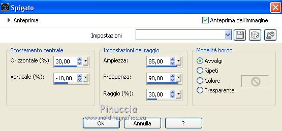 se l'immagine si trovi in una posizione differente, i settaggi cambiano