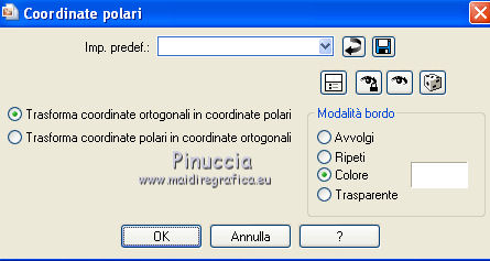 9. Effetti>Effetti di distorsione>Coordinate polari - 2 volte con i seguenti settaggi.