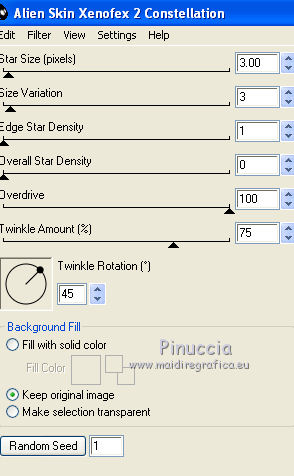 Effetti>Plugins>Alien Skin Xenofex 2.0 - Constellation, clicca su Random Seed e ok.