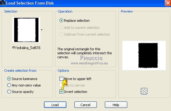 Look for and load the selection ©:Yedralina_Sel 616, Invert checked