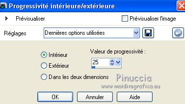 8. Sélections>Modifier>Progressivité intérieure/extérieure, comme précédemment.