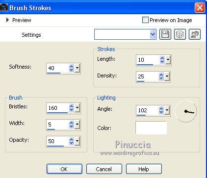 17. Effects>Art Media Effects>Brush Strokes, same settings.