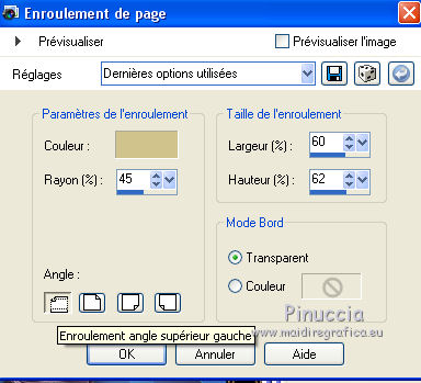 Effets>Effets d'image>Enroulement de page - couleur claire d'arrière plan #d0c38b.