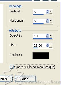 Effets>Effets 3D>Ombre portée, couleur noire.
