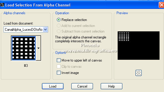 13. Selections>Load/Save Selection>Load Selection from Alpha Channel.