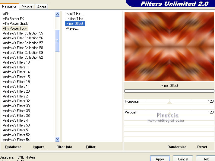 10. Effetti>Plugins>Filters Unlimited 2.0 - Alf's Power Toys - Mirror Offset, con i settaggi standard.
