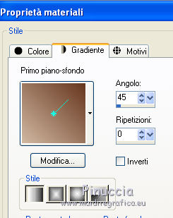 Passa il colore di primo piano a Gradiente, con i seguenti settaggi.