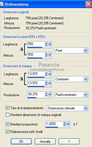 2. Immagine>Ridimensiona, a 550 pixels, tutti i livelli selezionato.