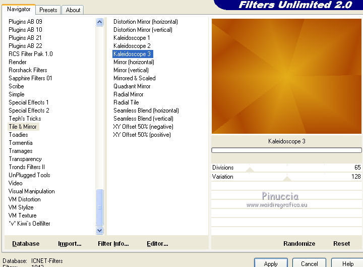 17. Effetti>Plugins>Filters Unlimited 2.0 - Tile and Mirror - Kaleidoscope 3, con i settaggi standard.